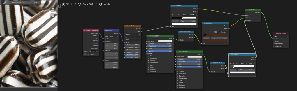 The wall is modelled on many walls I have seen in various labs. Bumpy green plastic panels separated by smooth plastic joints gives a workshop feel to the animation. They also help give a scale to the whole animation.