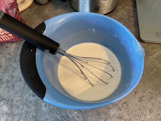 Serve soup with a sprinkle of bacon and cheese. Serve with bread; Mrs S makes excellent bread that is great with this. But we had none, so I had Warburton’s white instead.